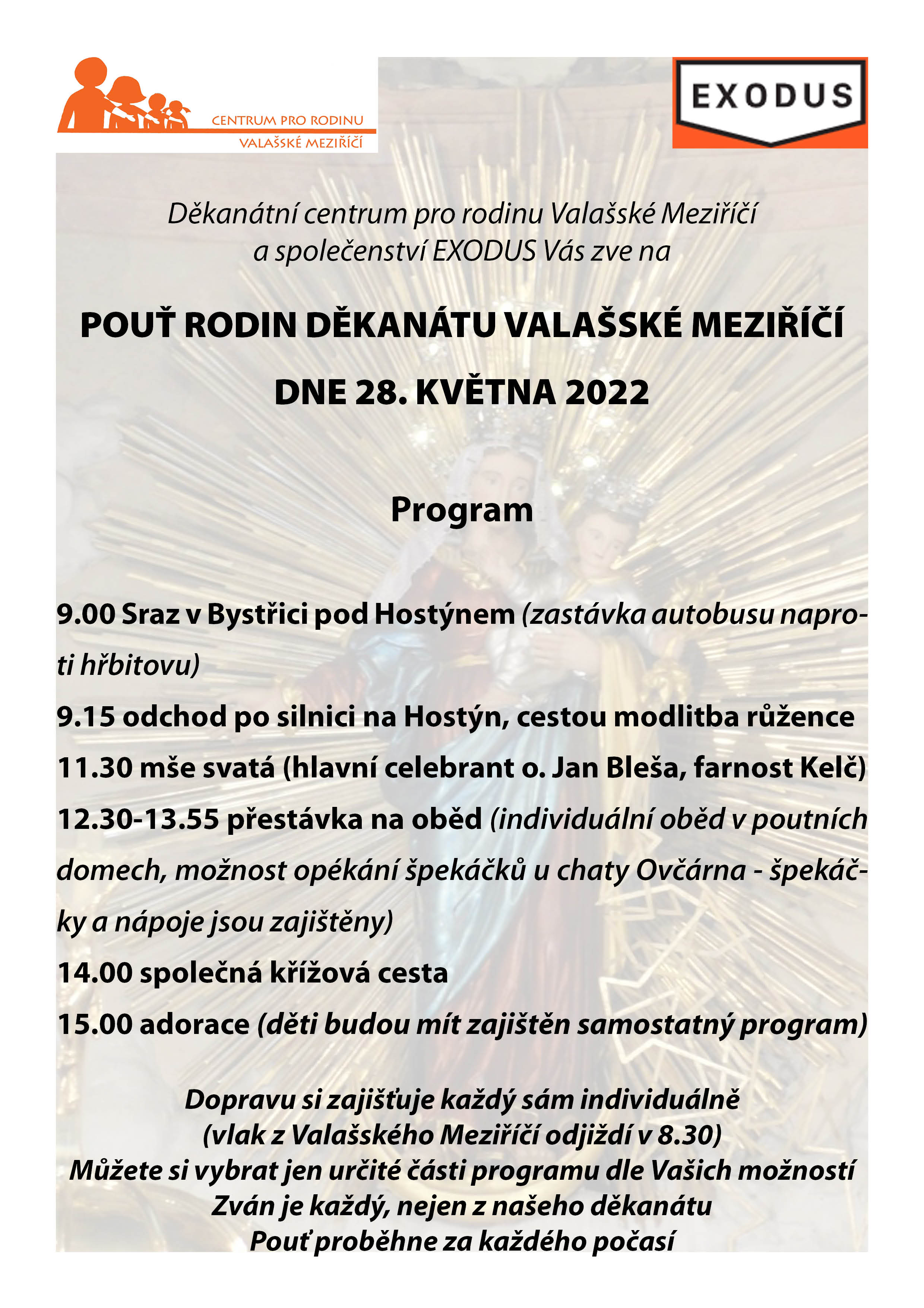 Děkanátní centrum pro rodinu a společenství EXODUS zve 28. května 2022 na pouť rodin na sv. Hostýn: