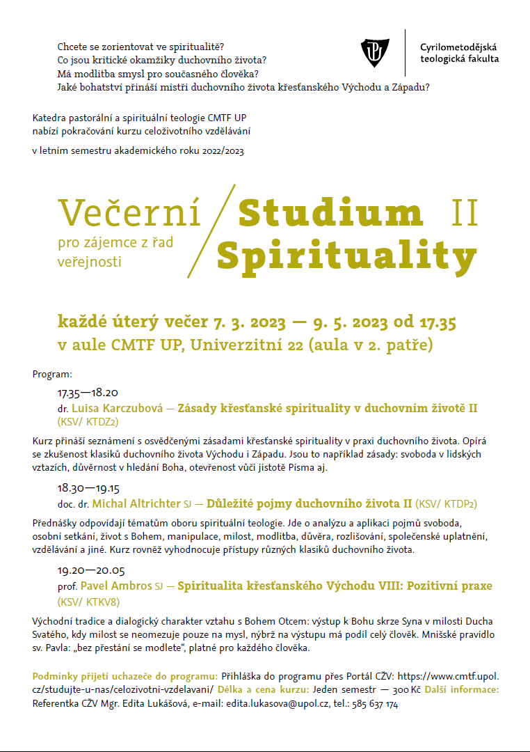 Večerní studium spirituality na CMTF UP